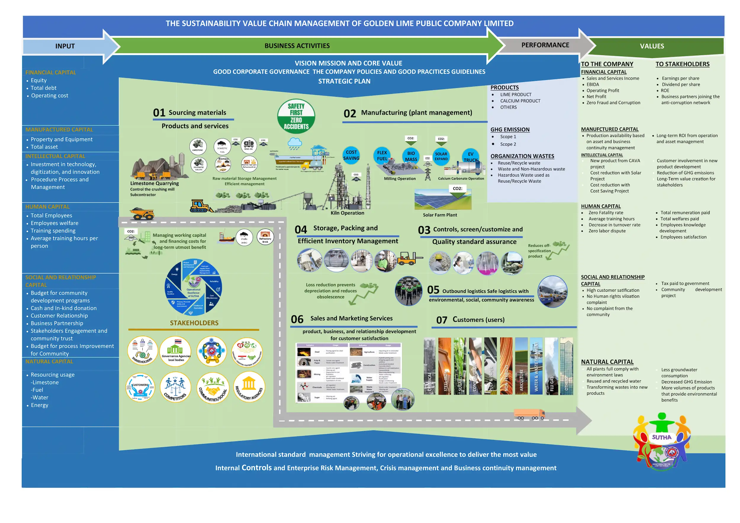 “A leading producer of lime and mineral processing in Southeast Asia,” delivering maximum value to shareholders and stakeholders. The Company engages in the manufacturing and distribution of its core products: quicklime, or Calcium Oxide (CaO), and hydrated lime, or Calcium Hydroxide (Ca(OH)₂). The Company operates four manufacturing plants located in Lopburi and Saraburi provinces.
